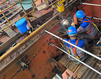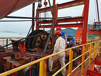 面對(duì)工期緊張、來(lái)船靠泊、連續(xù)降雨等不利因素,項(xiàng)目團(tuán)隊(duì)第一時(shí)間和業(yè)主溝通準(zhǔn)備入場(chǎng)資料,連夜組織協(xié)調(diào)施工人員趕赴現(xiàn)場(chǎng),迅速制定施工“作戰(zhàn)圖”,打通施工通道,組織平行作業(yè),盡全力保證各項(xiàng)工作有序開(kāi)展,最終提前半天完成3號(hào)卸船機(jī)大臂鉸接點(diǎn)軸承及主小車滑輪組更換工作。