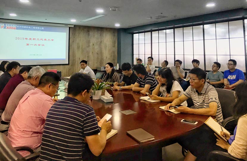 為更好地發(fā)揮工會(huì)組織在“促進(jìn)企業(yè)發(fā)展,保障職工權(quán)益”中的積極作用,根據(jù)《工會(huì)法》和《中國(guó)工會(huì)章程》的相關(guān)規(guī)定,華新機(jī)電于5月24日召開(kāi)了2019年度職工代表大會(huì)第一次會(huì)議進(jìn)行工會(huì)委員會(huì)的換屆選舉,會(huì)議由公司紀(jì)委書(shū)記、黨群工作部部長(zhǎng)胡萍主持,公司黨委書(shū)記、董事長(zhǎng)譚竹青參加了會(huì)議。